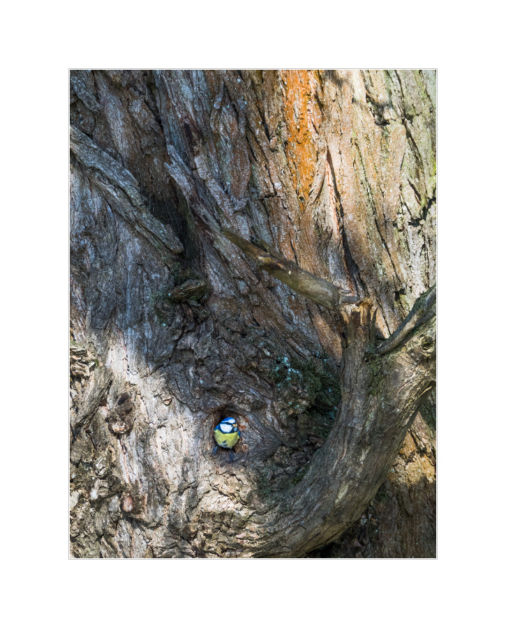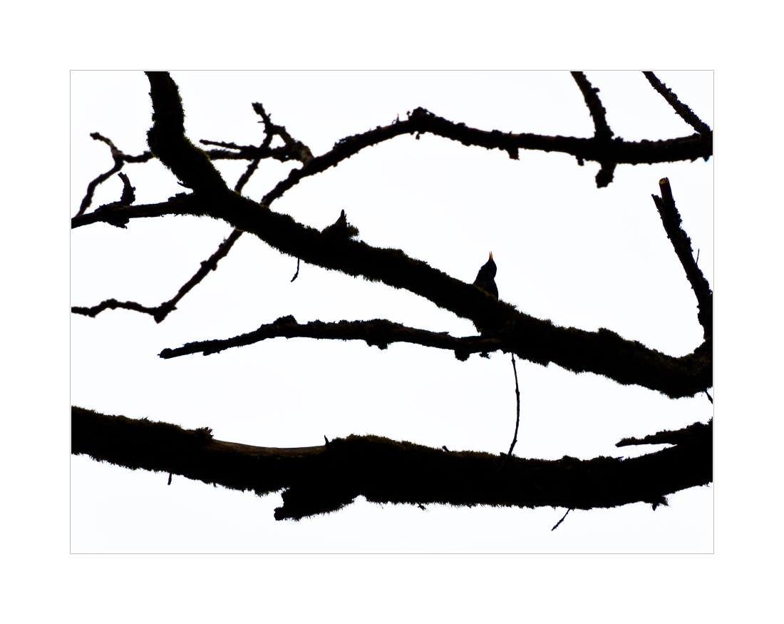 Auch wenn ich eigentlich gar nicht fotografieren wollte, sondern “nur” auf der Suche nach neuen Motiven hier in der näheren Umgebung war, hatte ich die Kamera dabei (ist ja auch für Notizen ganz gut). Und weil das Supertele so schön leicht ist, hatte ich auch das dabei. Ein paar Motive für spätere Fotos habe ich gefunden, wobei sich da ja immer die Frage stellt wie’s dann wirklich bei gutem Licht und/oder Nebel ausschaut. Ein paar Fotos habe ich auch gemacht. Die Überschrift verrät’s schon: Vögel. Das heutige Highlight war eine rufende Eule. Ich habe zwar kurz versucht dem Ruf zu folgen und sie zu finden, dann aber schnell wieder aufgegeben… Auf den Fotos also keine Eule, dafür ein Suchbild mit Star und zwei Blaumeisen: