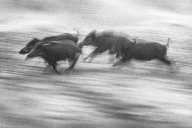 Etwas früher am selben Morgen und als ich genau dasselbe gemacht habe, nämlich schauen was sich so tut abseits der Hirsche, hat mir auch diese Szene hier sehr gut gefallen. Nette Nebelschwaden über der Landschaft, cooles Licht, nette Bäume, ein Graureiher – der in die falsche Richtung spaziert – und überhaupt, genau meine Stimmung.