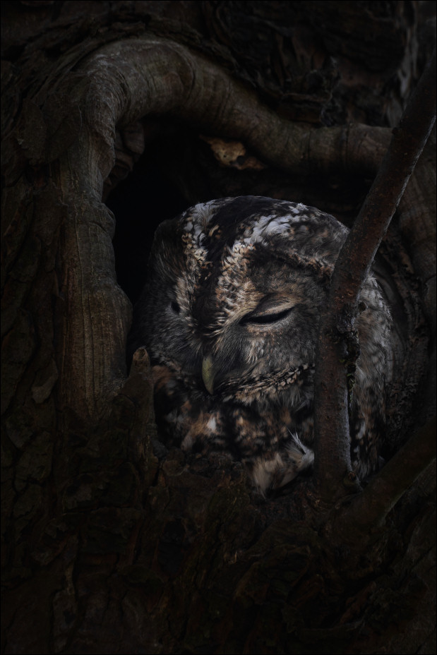 Wollte mal schauen, was der Waldkauz dieser Tage so macht. Viel ist es nicht, an sich genau dasselbe wie letztes Mal: Rumsitzen. Sehr sympathisch der Vogel.