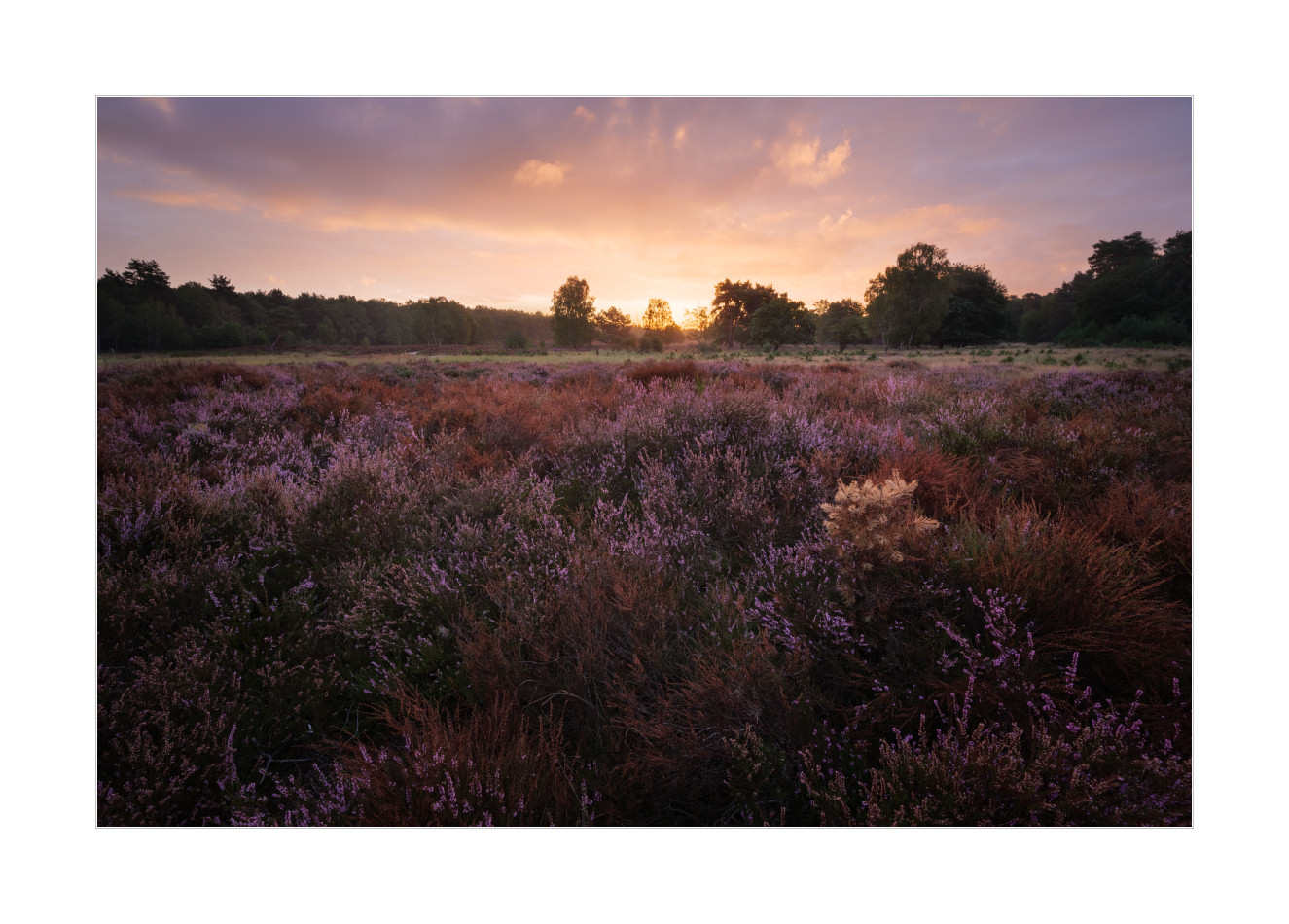 Ich hätte gar nicht damit gerechnet, dass heute Morgen ein Foto entsteht, auf dem irgendwas zu sehen ist, was direkt mit der Heide im eigentlichen Sinn zu tun hat. Aber als es dann zum Sonnenaufgang schön bunt wurde, habe ich mich tatsächlich beeilt um die Stimmung nicht zu verpassen. Mein eigentlicher Plan – Hirsche – wollte dagegen nicht so richtig funktionieren. Aber da hoffe ich einfach mal auf die kommenden Tage…
