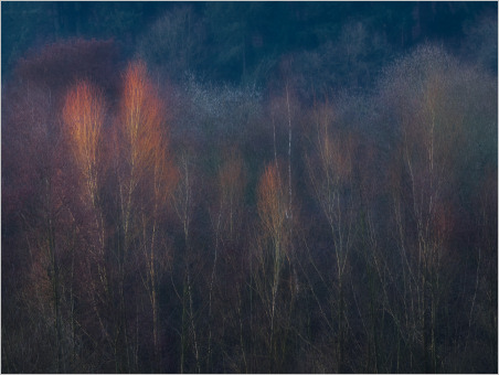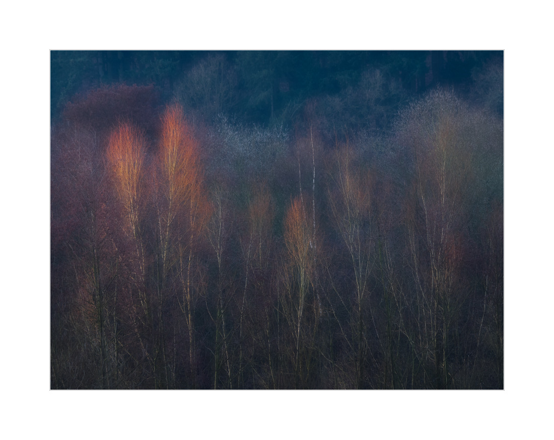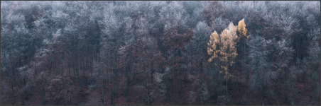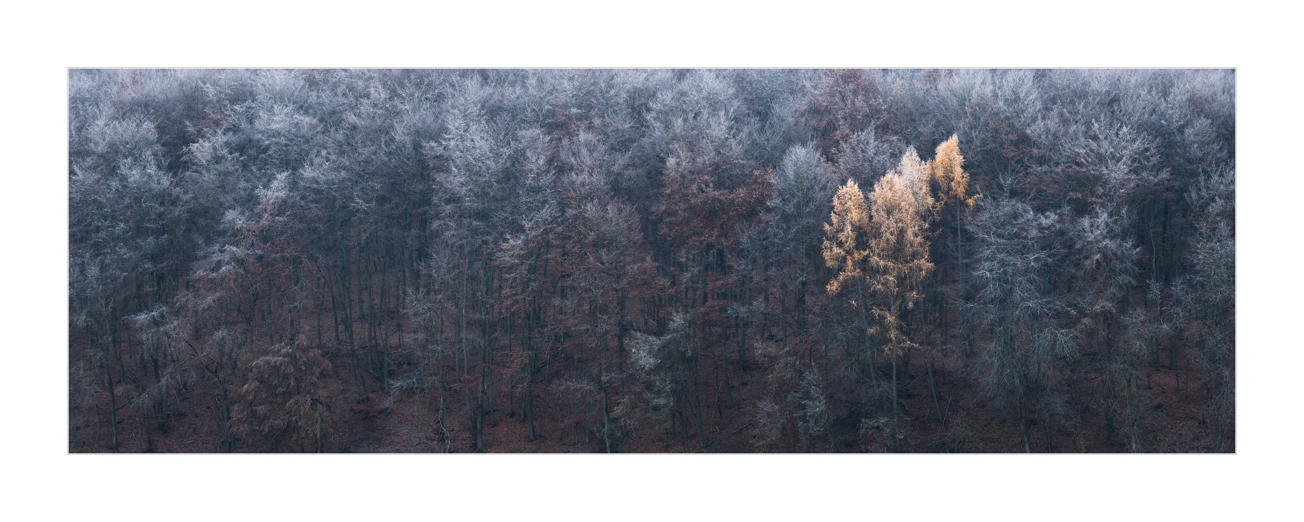 Das ist jetzt kein neues Motiv für mich gewesen. Neu ist aber, dass ich die bunten Lärchen in ihrer verreiften Buchenwaldumgebung als Panorama aufgenommen habe. Hat schon was so ein Farbklecks im Spätherbst-Frühwinter-Wald: