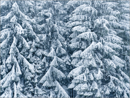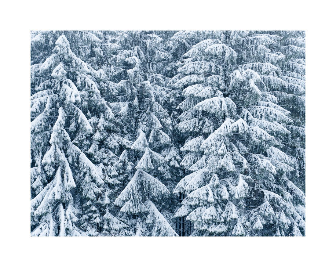Huch, das war ja jetzt doch mehr als erwartet. Eigentlich sollte es ja nur vormittags noch etwas Schneefall geben und danach sollte sich die Schneefallgrenze dann schnell in höchste Höhen vertschüssen, also so auf 800m Höhe aufwärts. Sah dann aber plötzlich alles ganz anders aus. Spontan bin ich dann zum Rimberg gefahren und habe meinen dortigen Lieblingswald besucht (vermutlich habe ich jetzt genau das eine Schwanenfoto im Starkschneefall verpasst?!). Der Wald dort, das ist ja auch so ein Motiv, das ich wirklich oft fotografiere in letzter Zeit… Hier ein Foto: