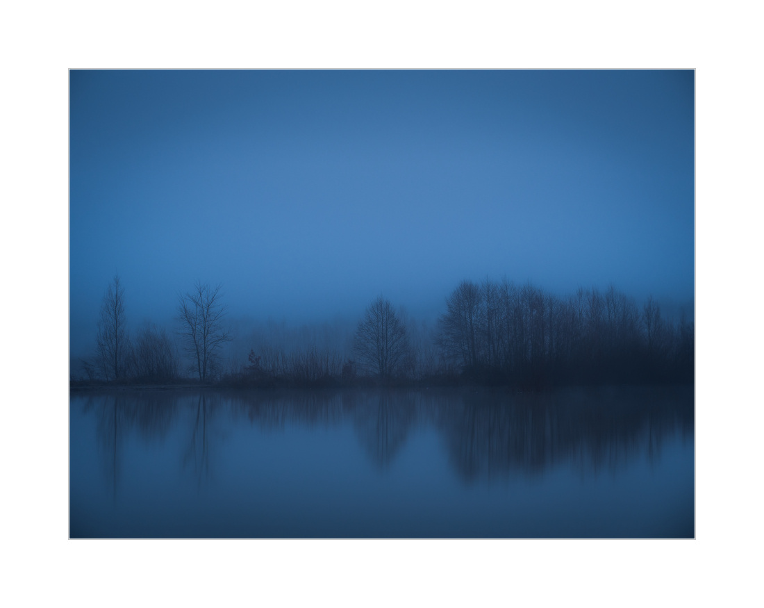 Bevor sich die Schwäne so kooperativ gezeigt haben, war’s hauptsächlich mal dunkel und neblig. Von den Schwänen war erst Mal weit und breit nichts zu sehen, waren wohl irgendwo im Nebel unterwegs: