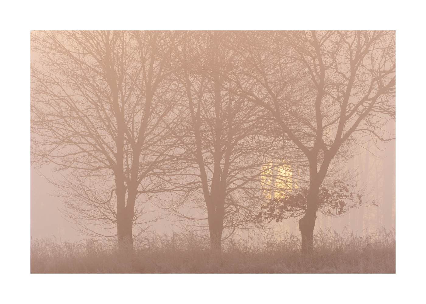Den Sonnenaufgang habe ich zwar verpasst, aber das war wohl ziemlich egal. Schuld daran war die Nebelobergrenze, die lag anfangs doch recht hoch, sank dann allerdings schnell immer weiter ab. Wunderbar! Und weil im Winter der Sonnenstand ja eh durchgehend schön tief ist, gab’s dann auch eine Weile nach Sonnenaufgang noch ganz nettes Licht für “Über-dem-Nebel-Fotos”.