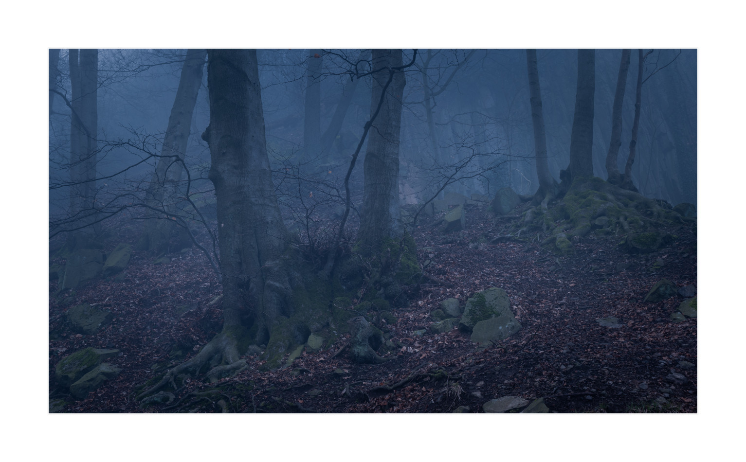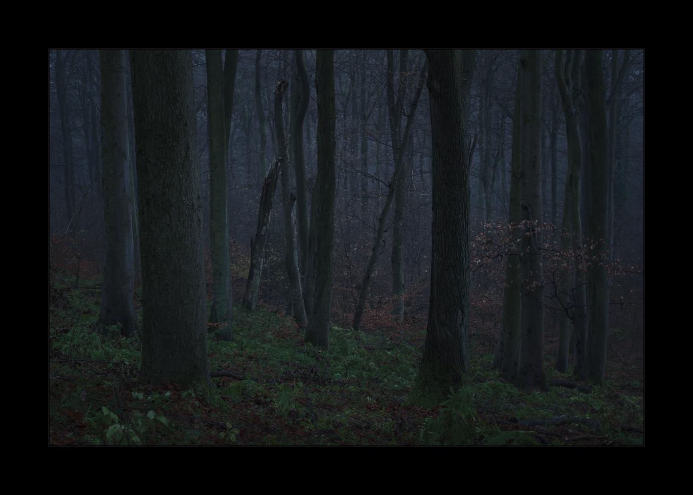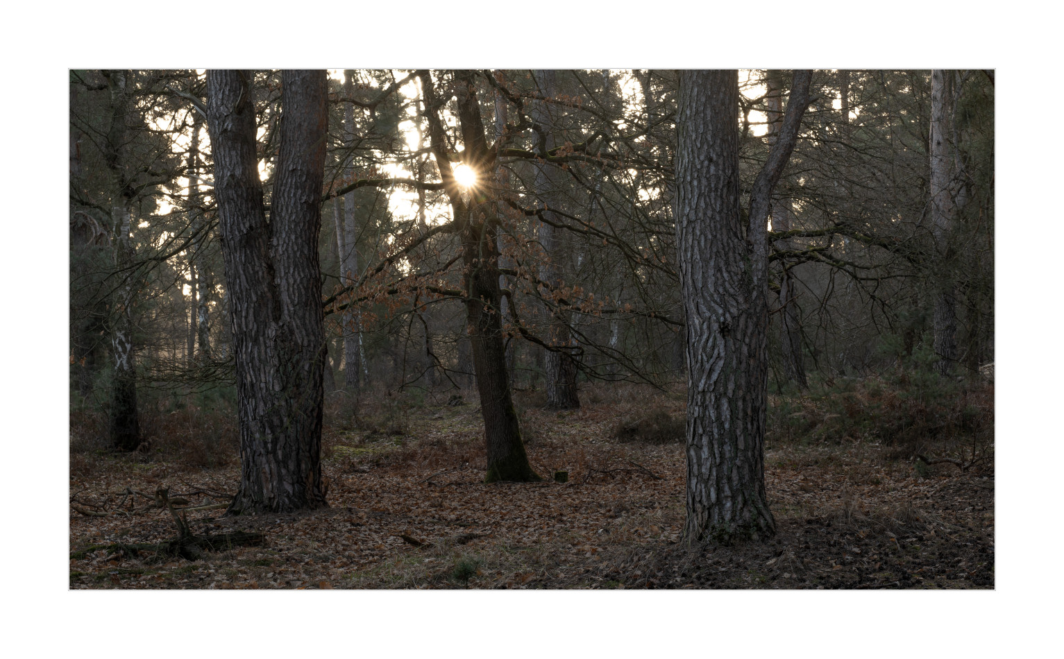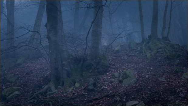 Aber dann wurde es doch noch so richtig edel! Nebel im Wald bei Sonnenaufgang. Geniales Licht einfach. Schrie geradezu nach Panoramaformat. Ich mag es irgendwie, wie die schattigen Bereiche noch schön bläulich erscheinen und die durch die tiefe Sonne beschienenen Teile schön warm. Genau nach meinem Geschmack: