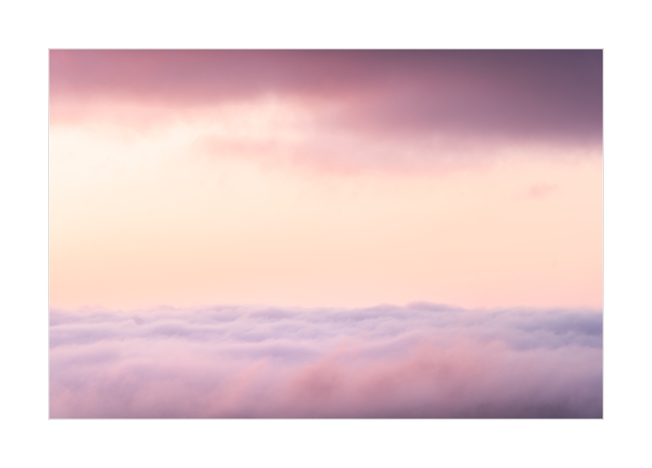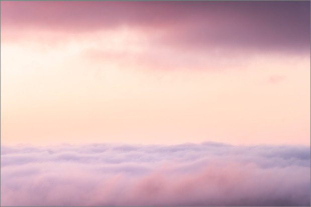 Von den sich dauernd wechselnden Lichtstimmungen aufgescheucht, bin ich dann wie ein durchgedrehter Hase auf Valium immer wieder den Hügel hoch und runter geeilt. Und, naja, es hat sich nicht unbedingt gelohnt? Aber es gab zwischendurch doch glatt mal einen freien Blick über den Nebel… Oder zwischen den Nebeln? Schon interessant. Sehr bunt auf jeden Fall, weil halt direkt bei Sonnenaufgang:
