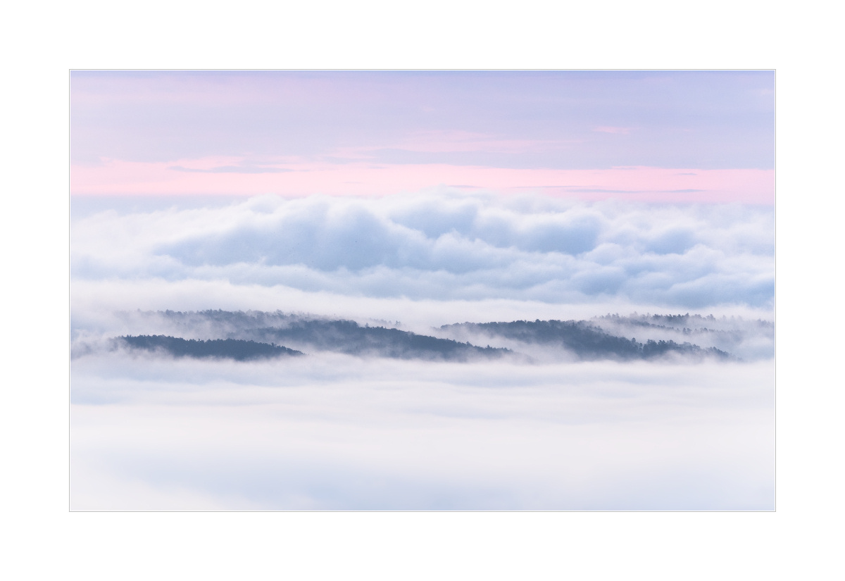 So kam mir das alles etwas halbherzig vor und ganz ohne Sonne hat der recht wenige Nebel dann halt noch weniger geboten. Vor Sonnenaufgang war’s allerdings kurz recht hübsch. Hier das Foto: