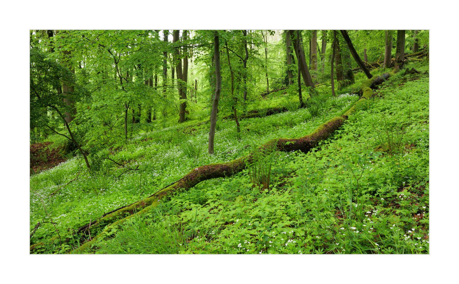 Beeindruckende Laubwälder gibt es ja (noch) einige, aber solche mit so herrlichem Bodenbewuchs sind schwer zu finden. Bild eins ist mein Favorit; tolle Staffelung der Stämme, das ansteigende Gelände und die verschiedenen Grüntöne am Boden – ein Bild, in dem es viel zu entdecken gibt und das mich zum längeren Verweilen einlädt.