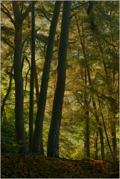 Endlich hat die Schlechtwetterphase ein Ende gefunden. Da allerdings durch den – zumindest heute noch – recht starken Wind zu Sonnenaufgang nicht mit Nebel zu rechnen war, bin ich in der Früh einfach mal auf einen der mit Kiefernwald bewachsenen Hügel “nebenan” spaziert und hab mir dort den Sonnenaufgang angeschaut. Zwei Impressionen aus dem Wald: