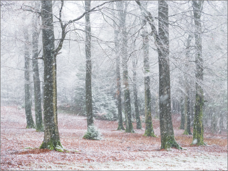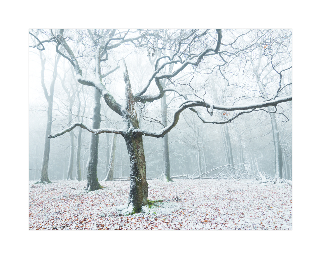 Um nicht zu riskieren, dass ich nur noch alles komplett weiß vorfinde, sondern noch ein bisschen Herbst zu erkennen ist, war ich heute am frühen Mittag (oder späten Vormittag?) kurz auf der Sackpfeife und habe den knorrigen Baum und ein paar seiner Freunde besucht. War recht nett mit dem Schneefall und ein bisschen Nebel bzw. aufliegenden Wolken.